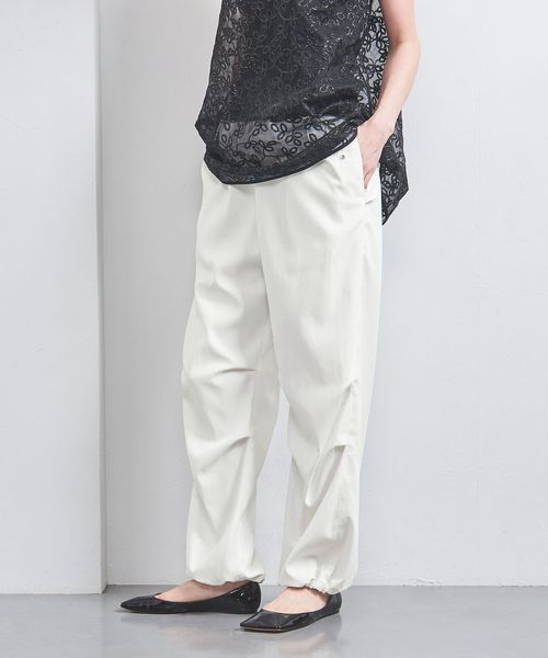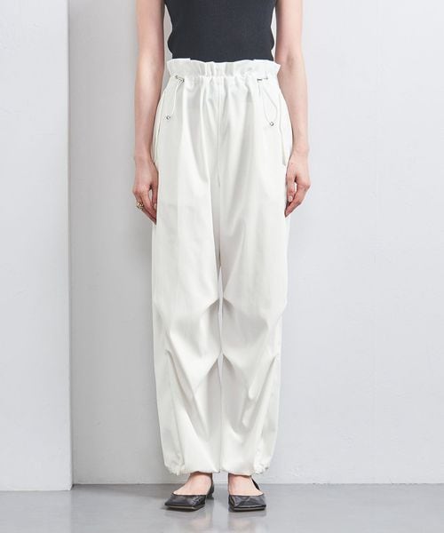 ウエストと裾は丸ゴムとストッパーのドローストリング仕様でサイズ調整が可能です。