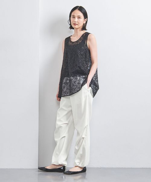 メッシュニットベストやツインカーディガンなどきれいめなトップスとの組み合わせがおすすめです。