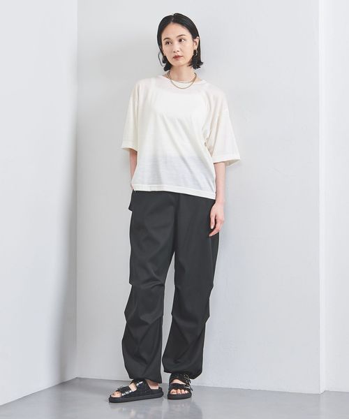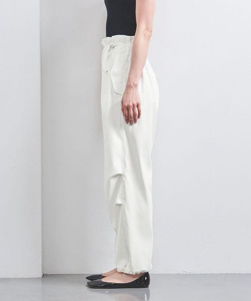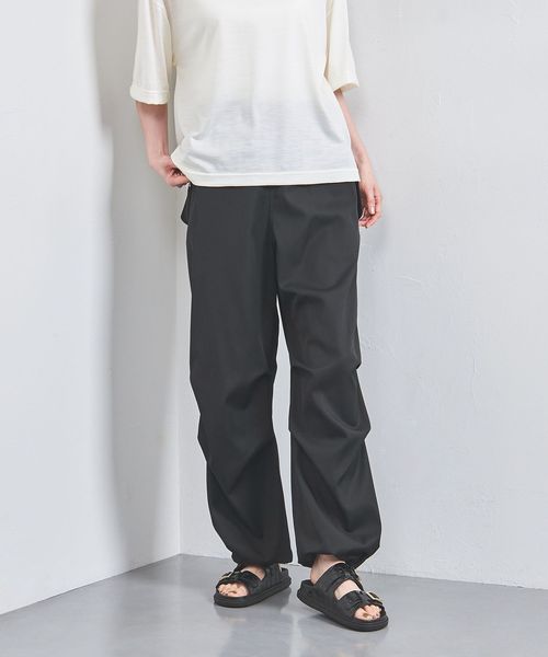 ヴィンテージのパラシュートパンツから着想を得たカーゴパンツをクリーンな印象の素材で作り、きれいめに仕立てました。