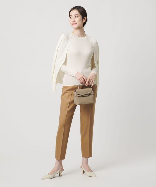 適度にボディにフィットする細リブ編みで、すっきりとしたシルエットが魅力。