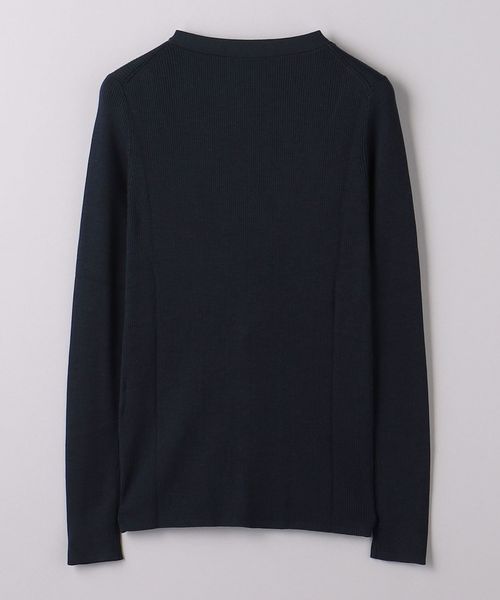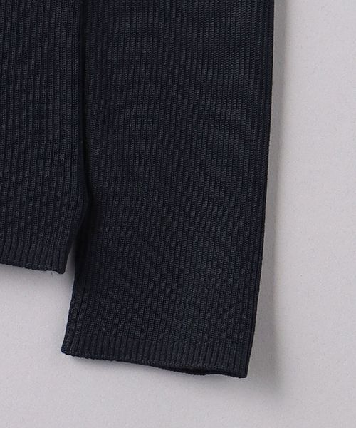 適度にボディにフィットする細リブ編みで、すっきりとしたシルエットが魅力。