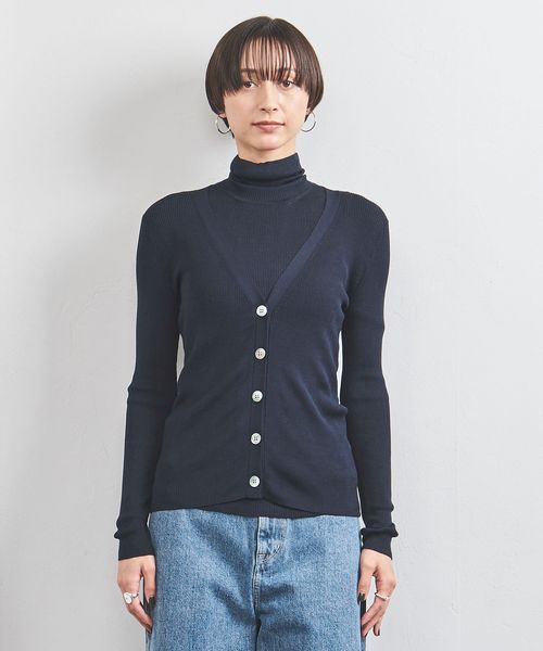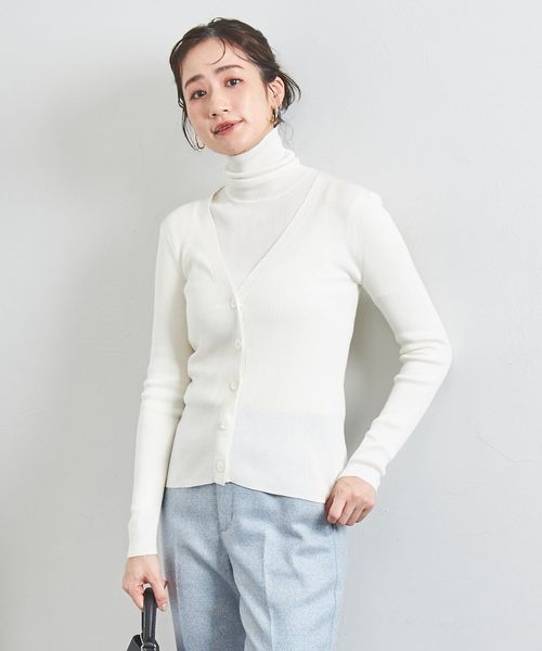 ロングセラーのシルクリブシリーズ、Vネック カーディガン