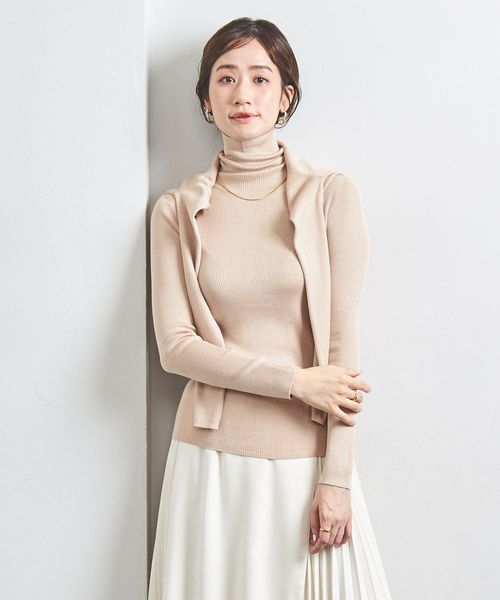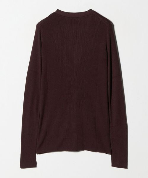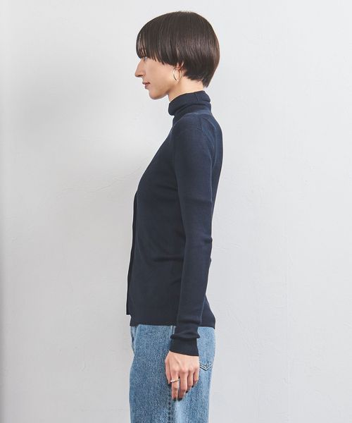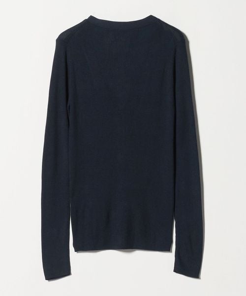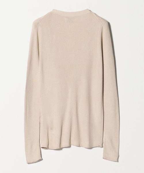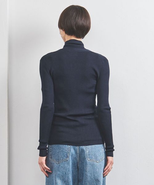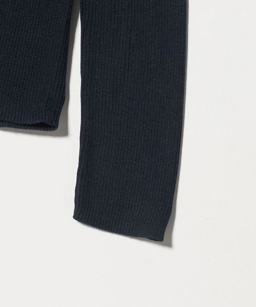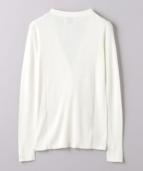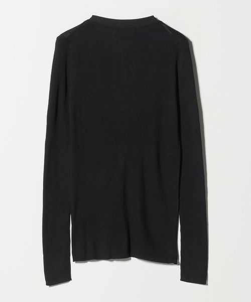 適度にボディにフィットする細リブ編みで、すっきりとしたシルエットが魅力。