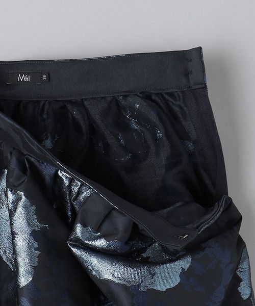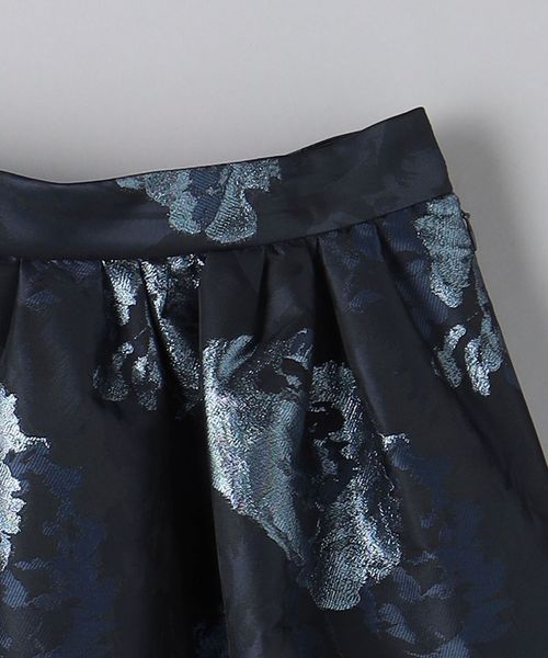 同系色で表現された花柄が大人な印象のジャカード素材を贅沢に使用したギャザースカート。