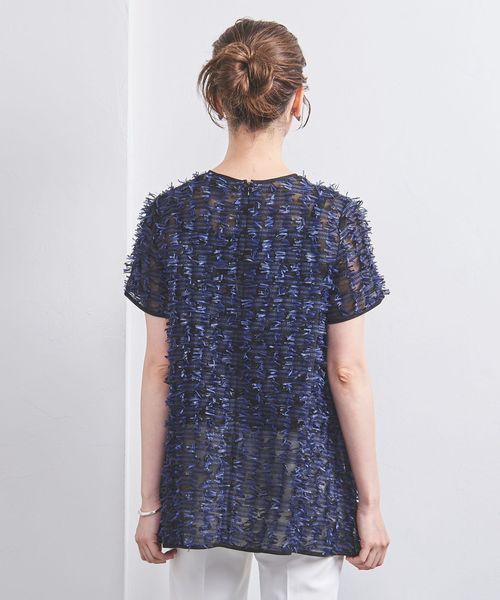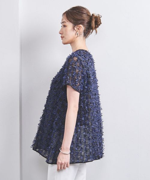 裾に向かって広がるシルエットが女性らしい印象の華やかなブラウス。