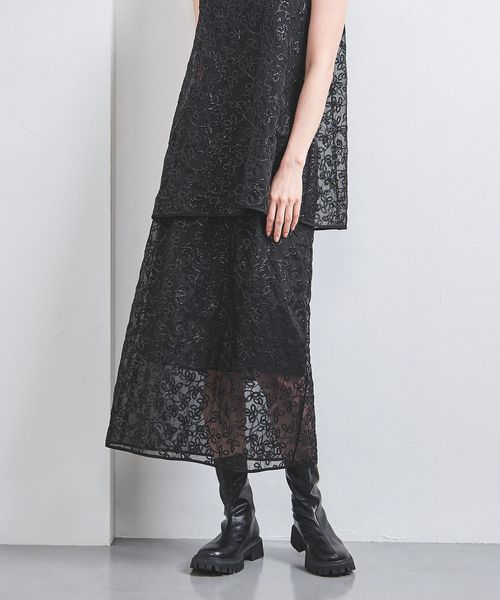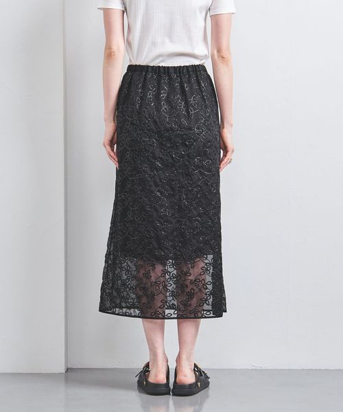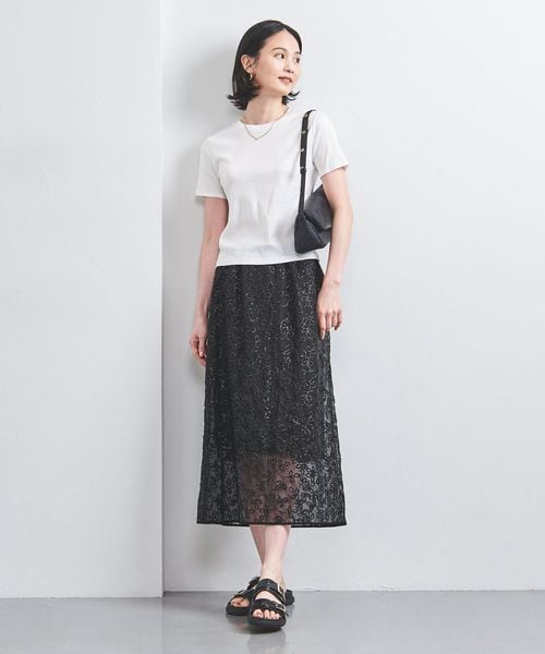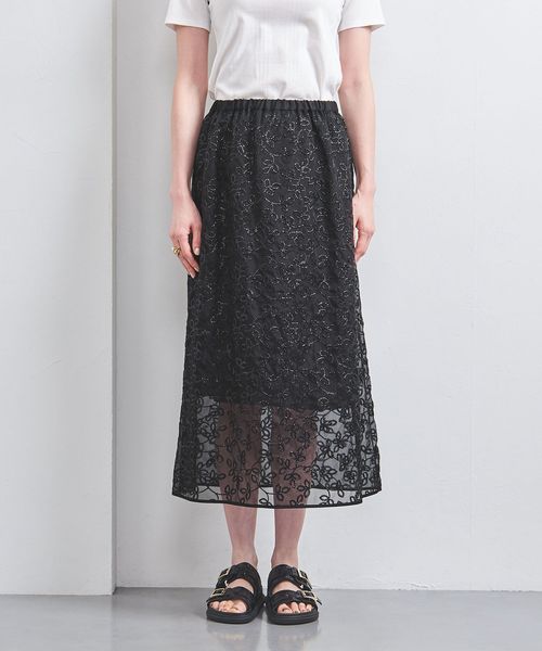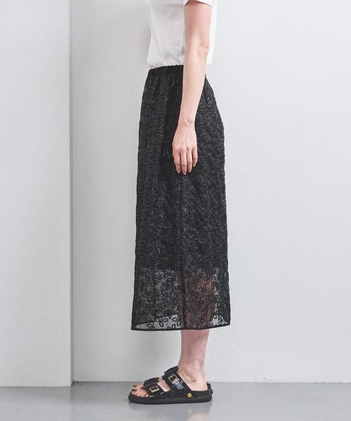 繊細で華やかな素材感を活かしたミモレ丈のギャザースカート。