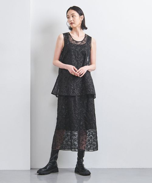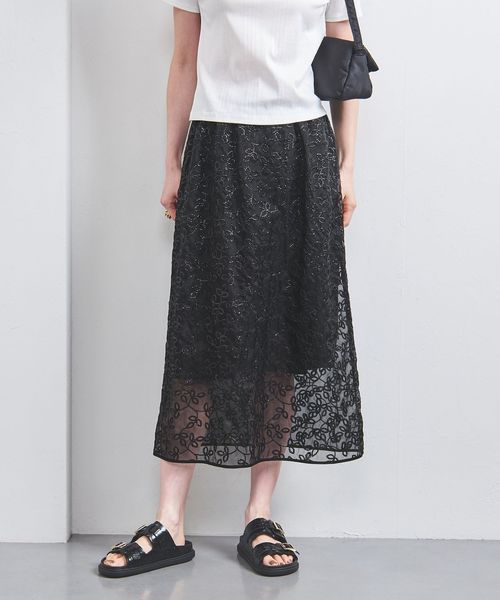 エレガントな雰囲気を持つスパンコールを配したギャザースカート