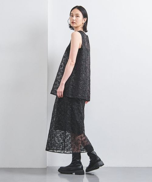 シアースカート単体をデニムパンツやブラックパンツに重ねたスタイルも素敵です。