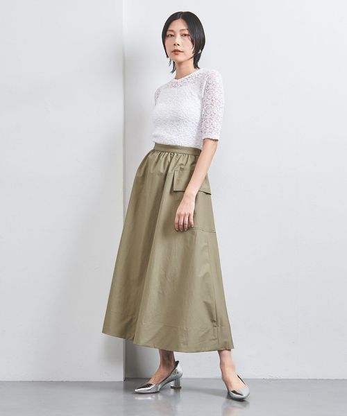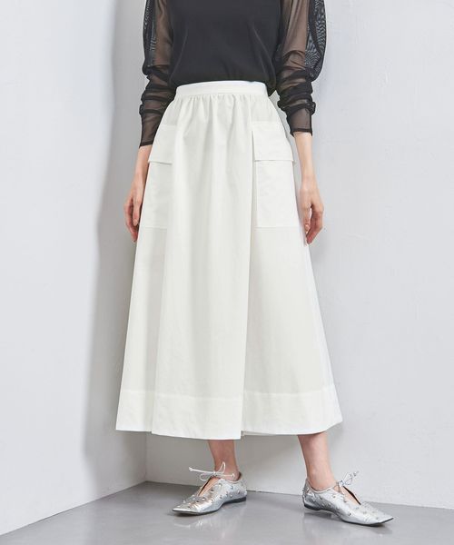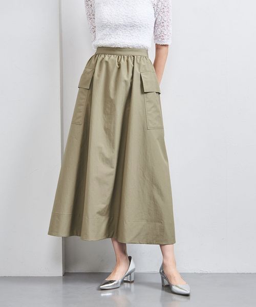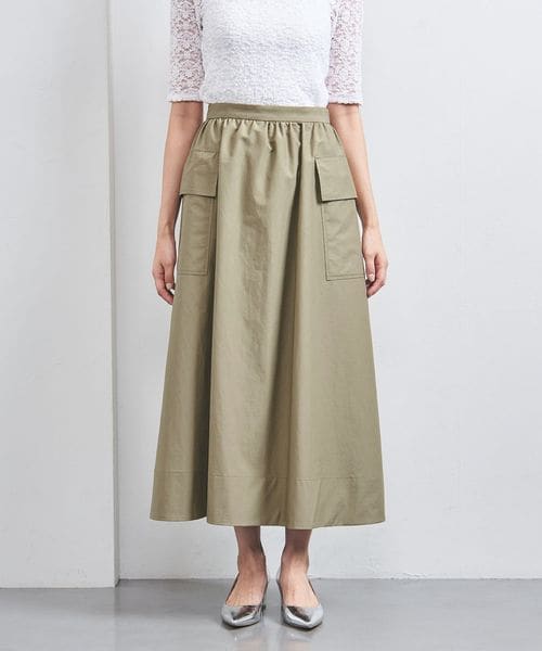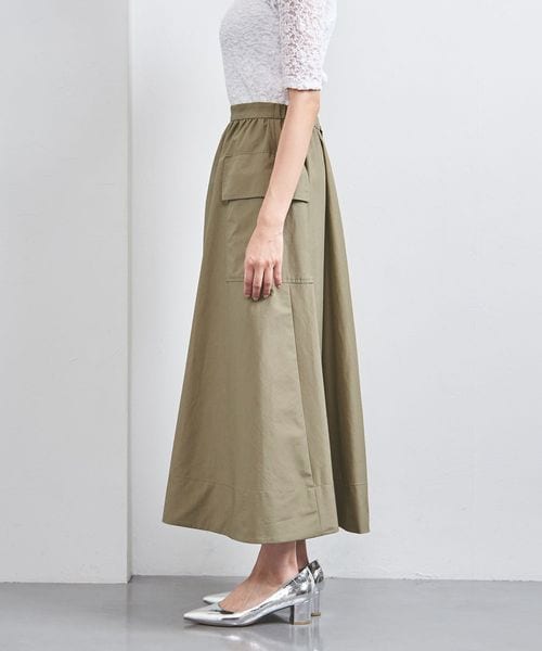 エレガントなフレアーシルエットに立体的なポケットのカジュアルエッセンスが効いたスカートです。