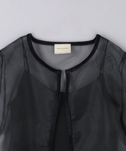 ボレロはシアーなオーガンジー素材にベロアをパイピングしてメリハリを加え、短めに仕上げました。