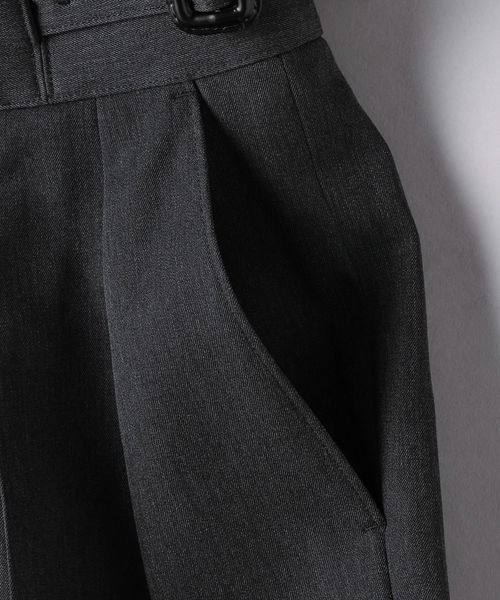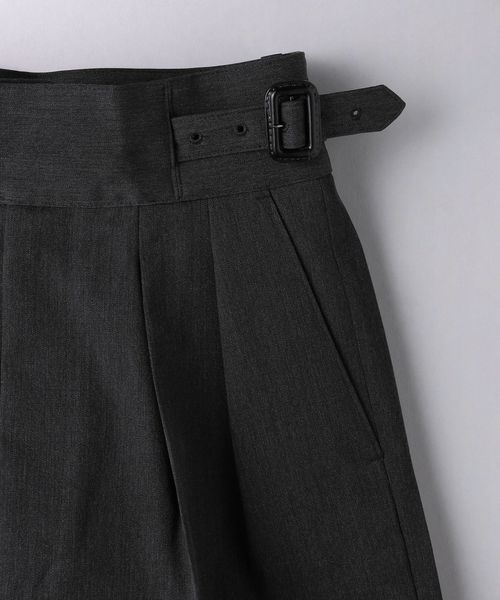 両サイドのベルトでウエストの調節ができるため、タックインでの着こなしにも適しています。
