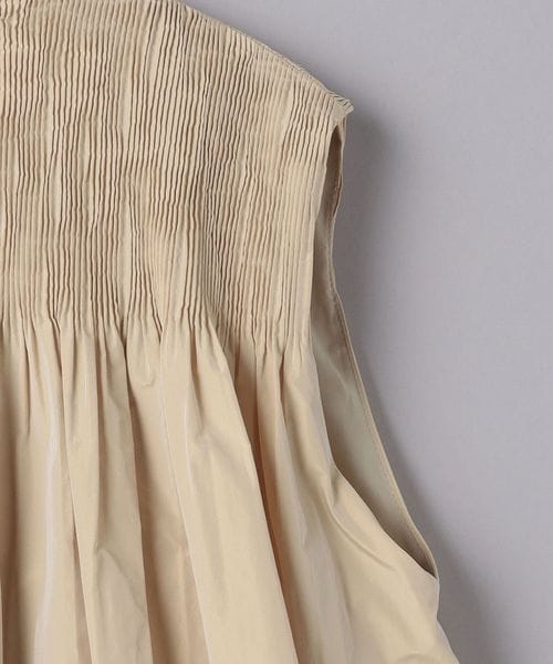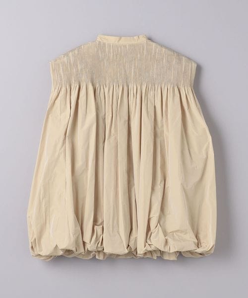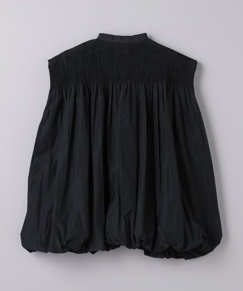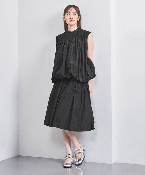 上部にシャーリングをほどこし、細かな縦ラインを強調しながらコンパクトに仕上げ、裾に向かってバルーンでボリューム感を出しています。