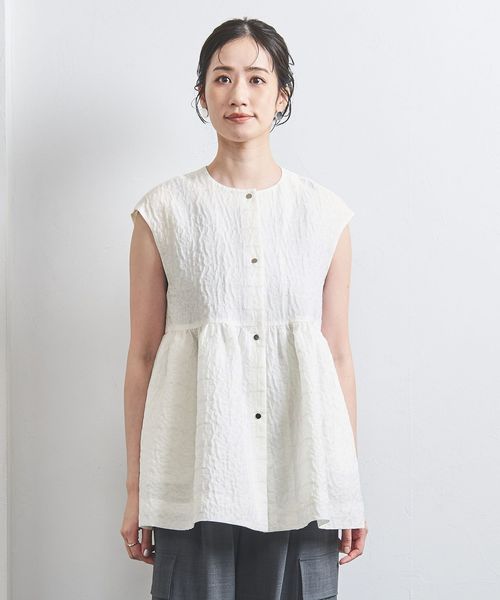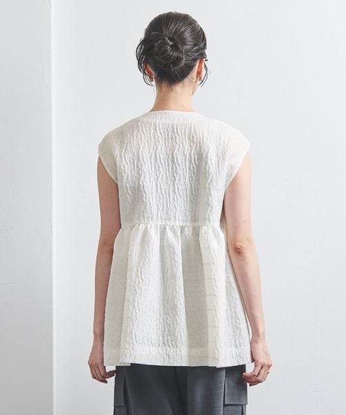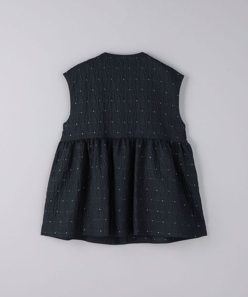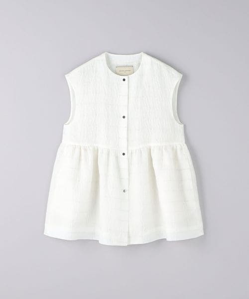 肩先を出し、気になる腕周りの露出をやや抑えて着やすくデザインされたベスト。