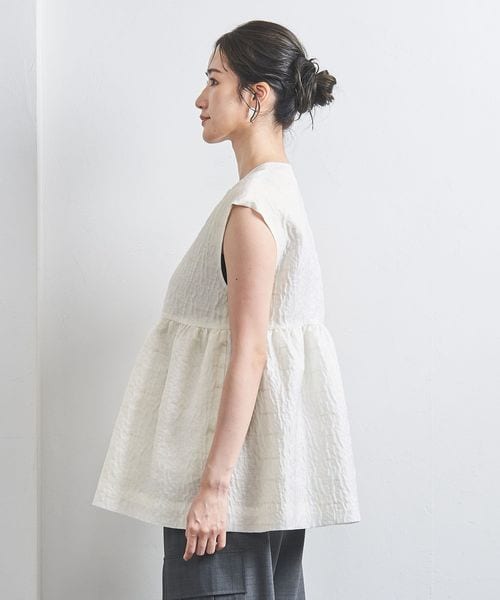 ウエスト上で切り替え、ふんわりとしたシルエットのペプラムディテールです。