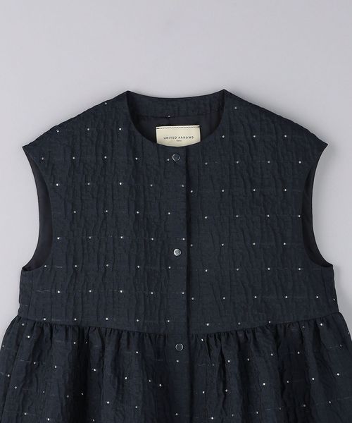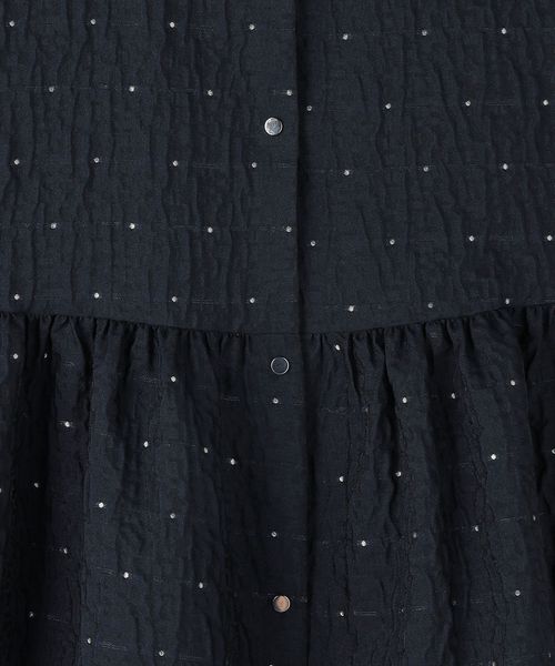シルバーカラーのメタルドット釦を配し、フロントを開けた際も華やかな印象で着こなせます。
