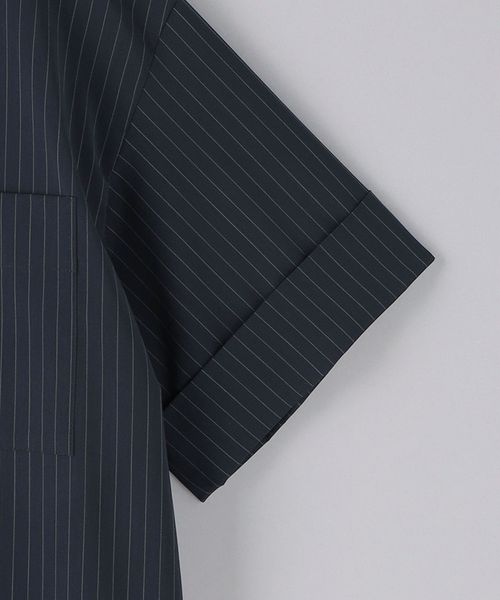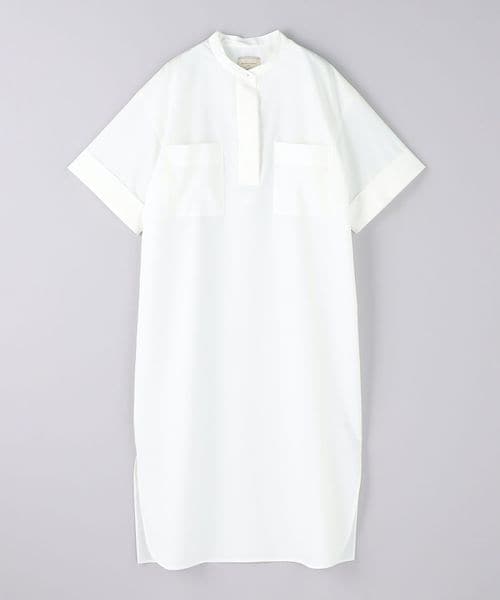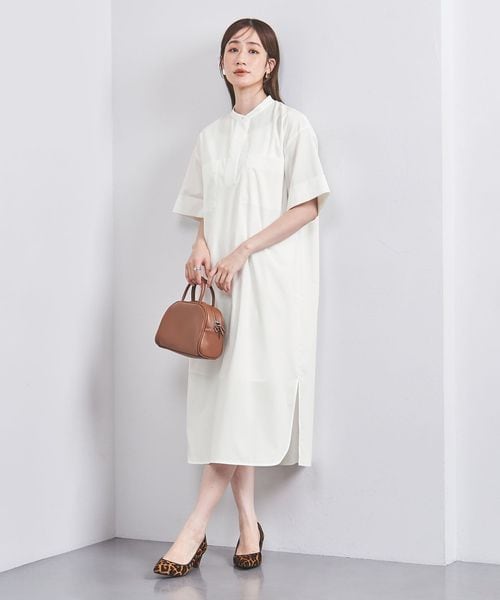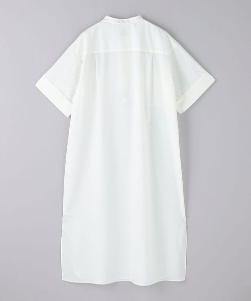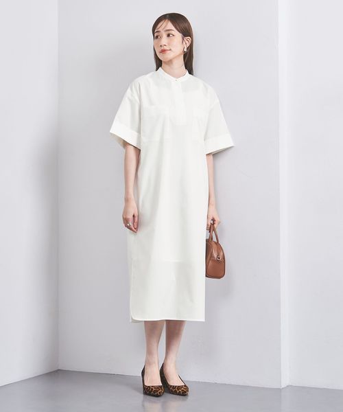 大きめのパッチポケットと辛口な印象の5分袖丈のシャツワンピース。