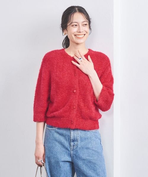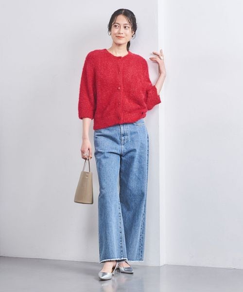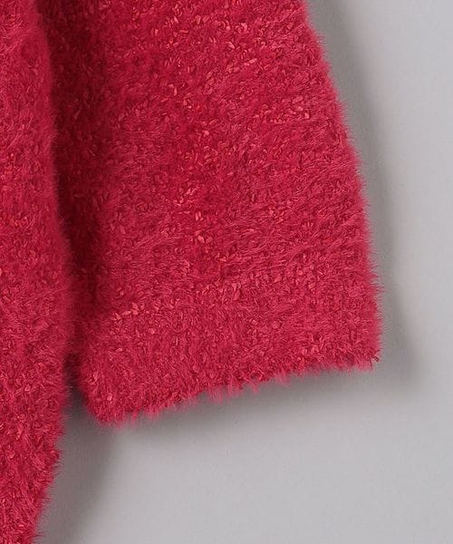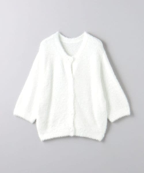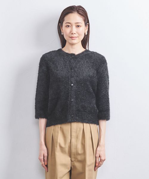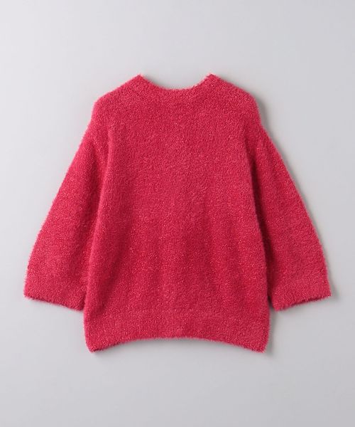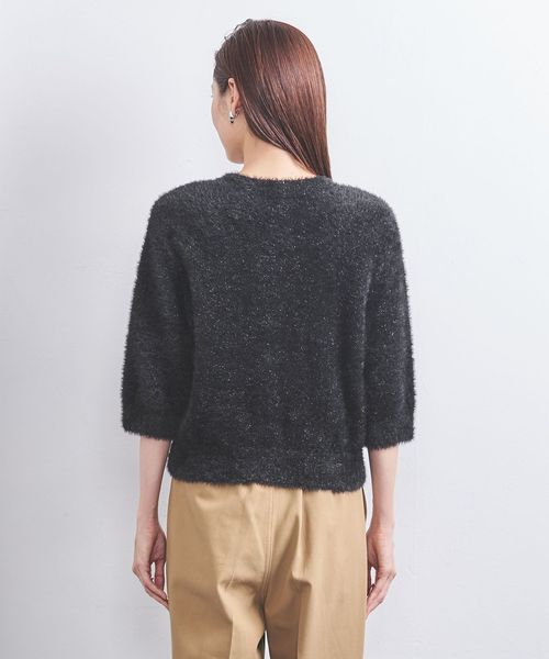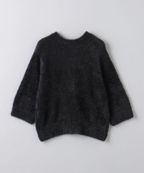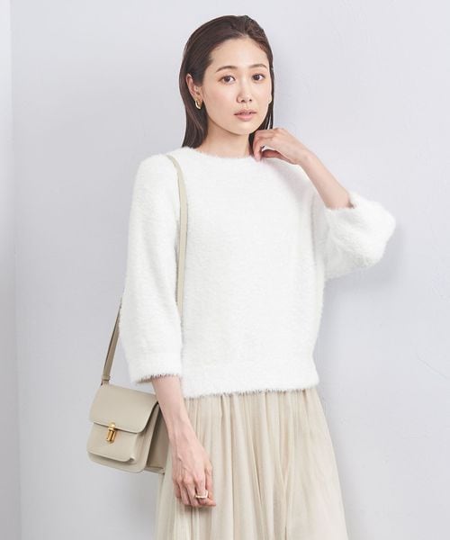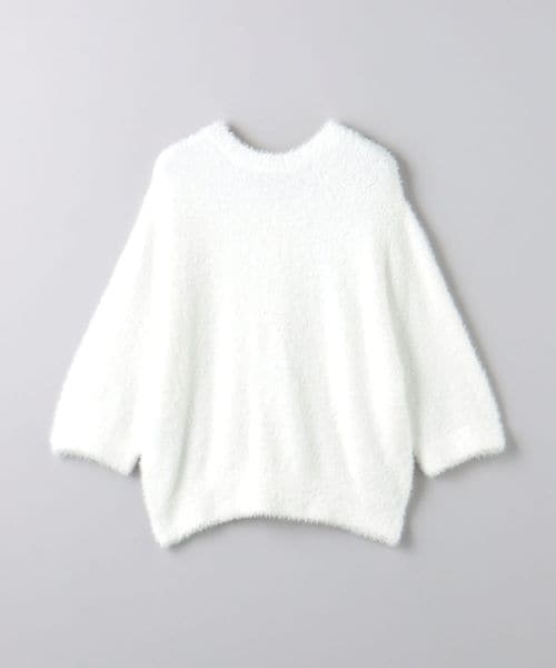 肘ぐらいの袖丈とやや短めの着丈が好バランスなニット。
