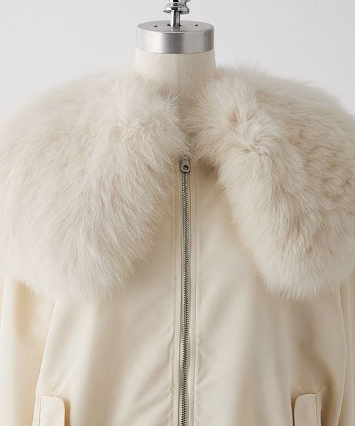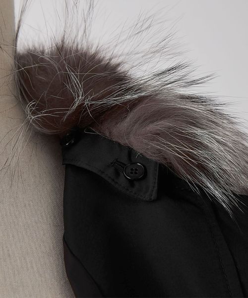 襟はノーカラーのデザインでファーはボタンで取り外し可能です。