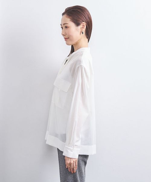 柔らかな透け感とワークテイストのパッチポケットの掛け合わせが特徴。