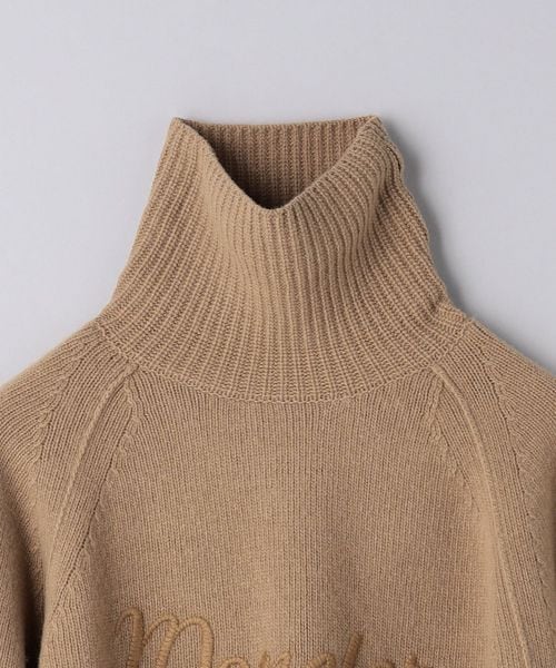 同色の刺繍ロゴがさりげなく主張するミドルゲージのニット。