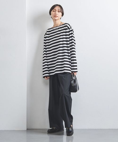 太めのピッチでコーディネートのポイントにもなるボーダーカットソーと無地ホワイトのカットソー