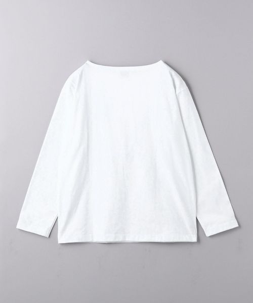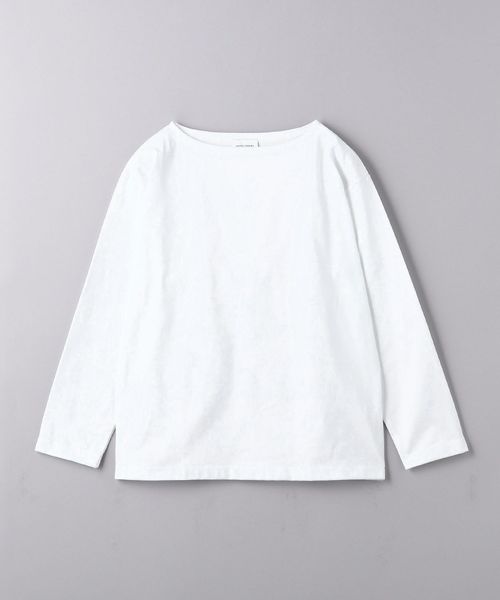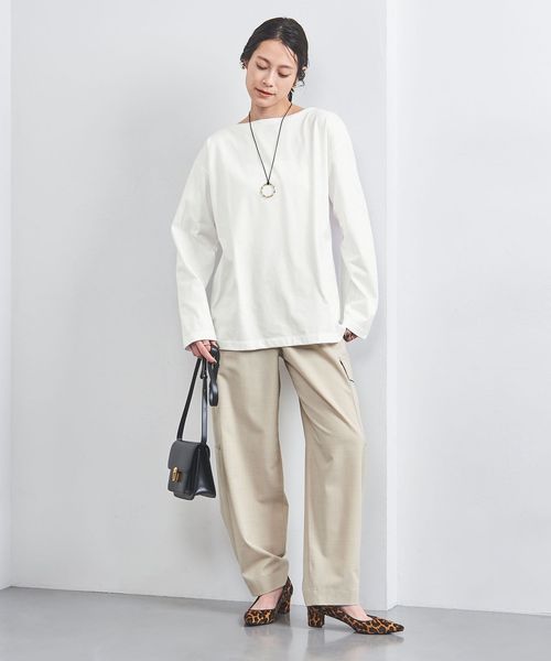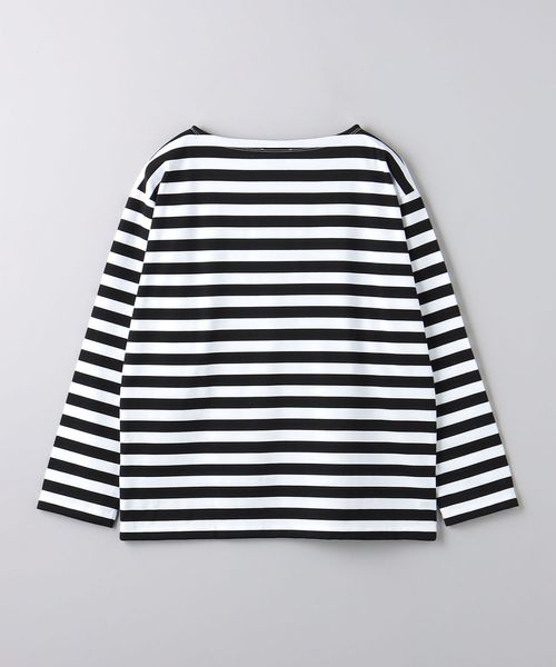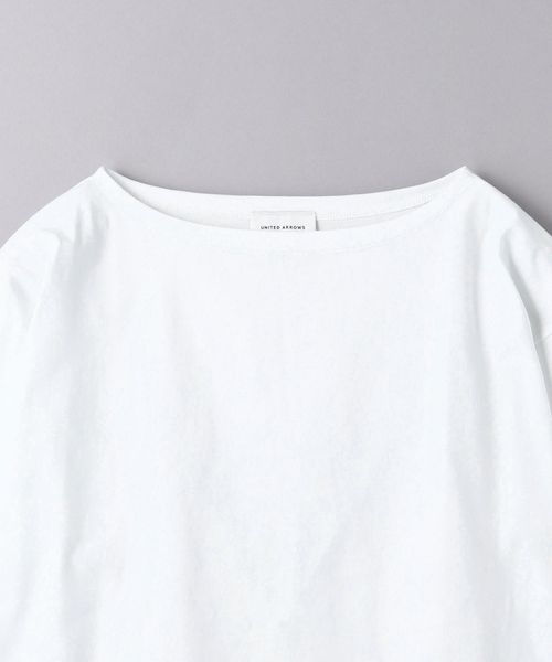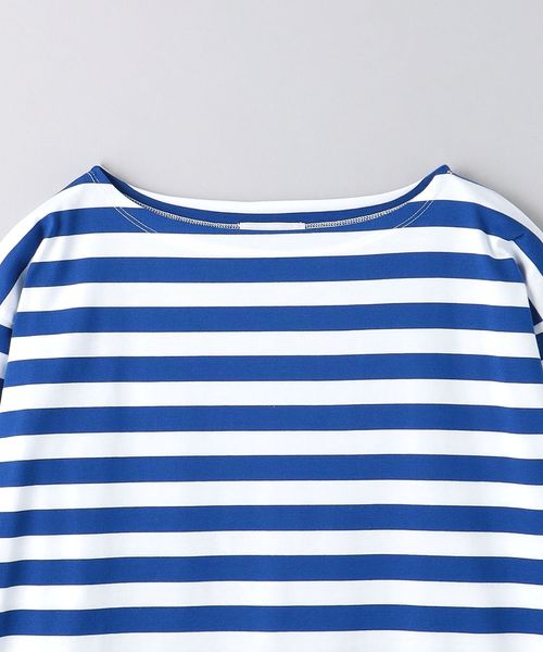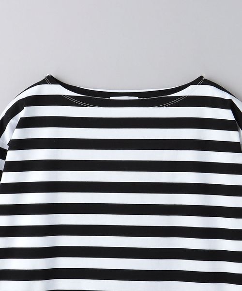 チョーカーなどのアクセサリーも映える、適度な開きのボートネックです。