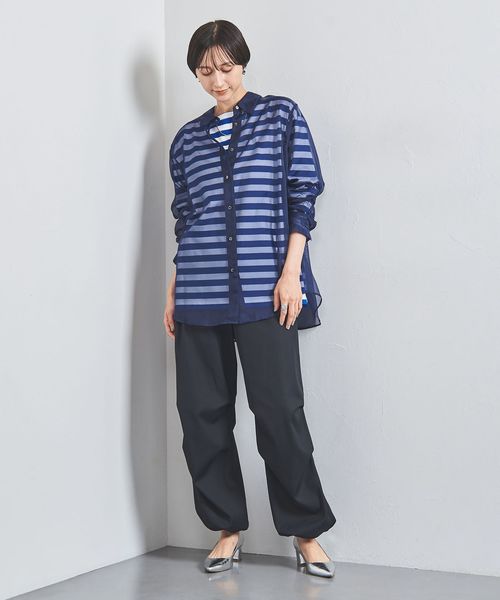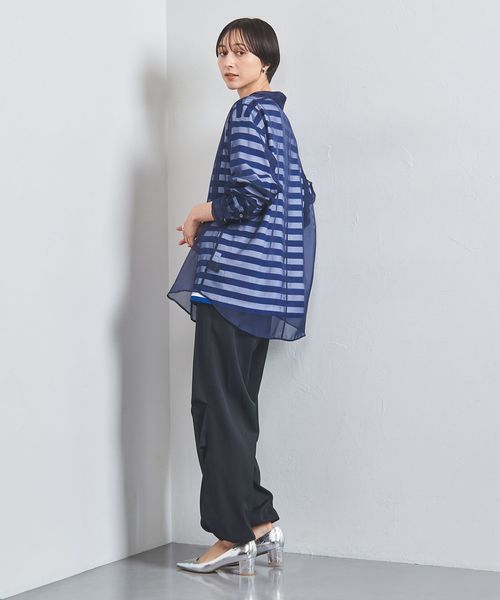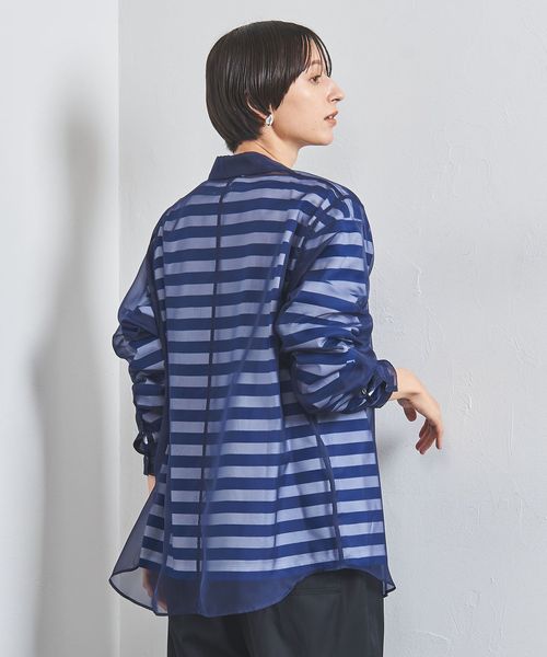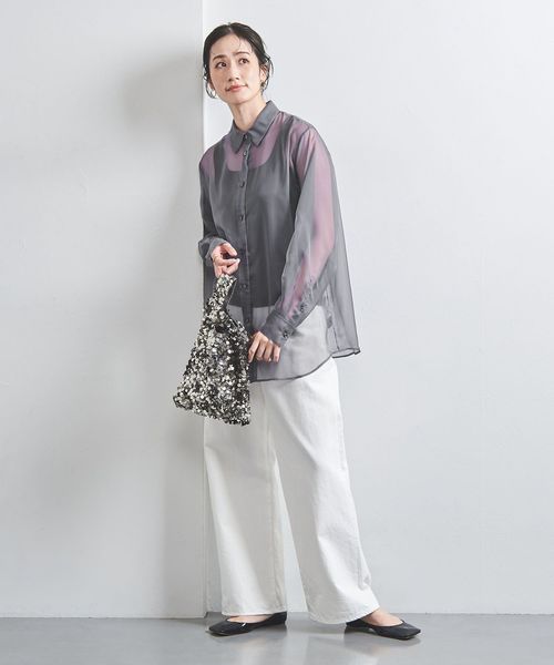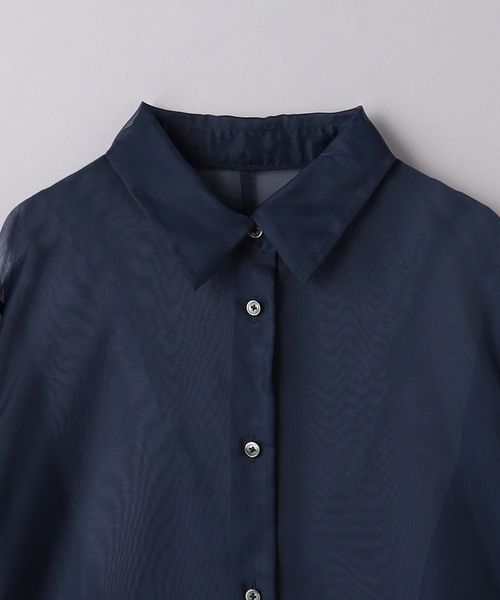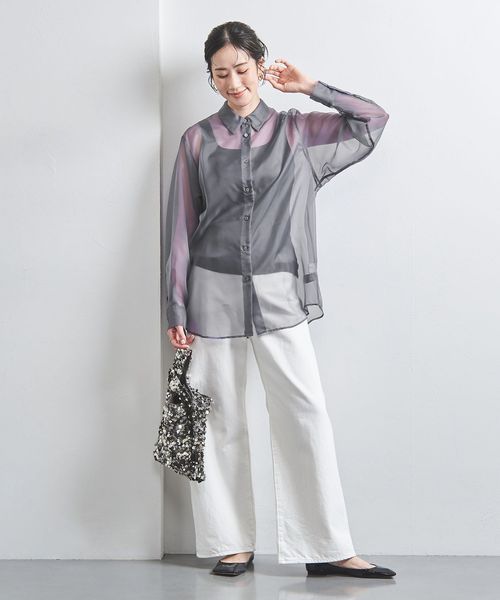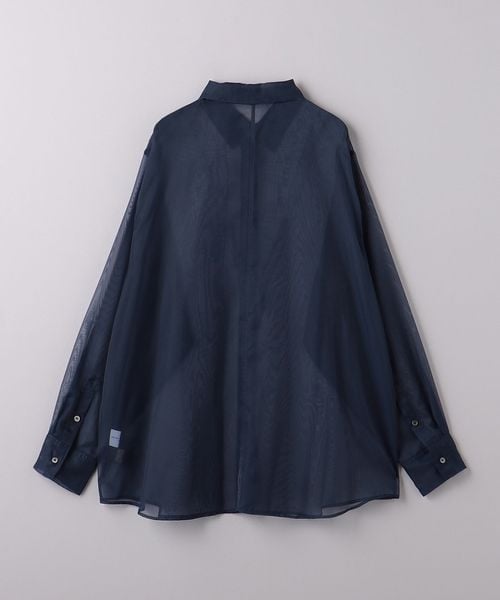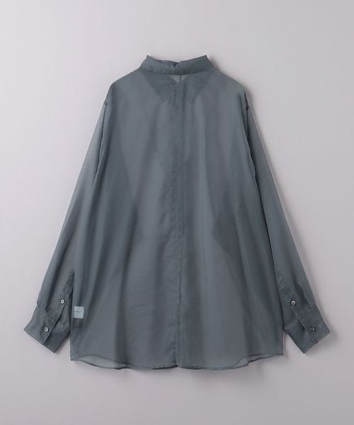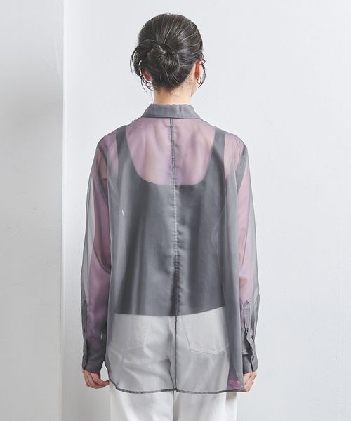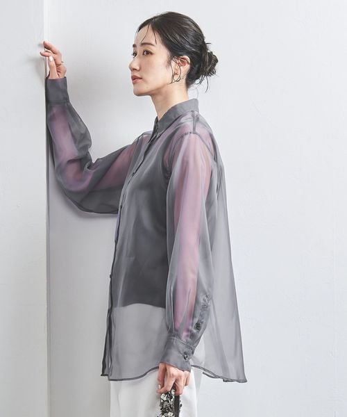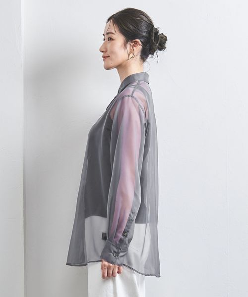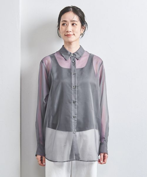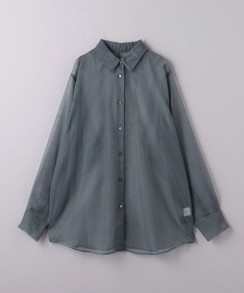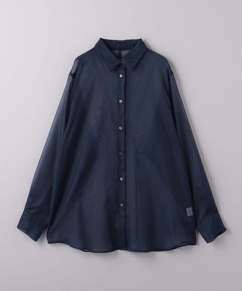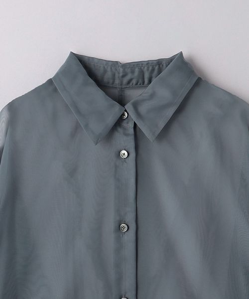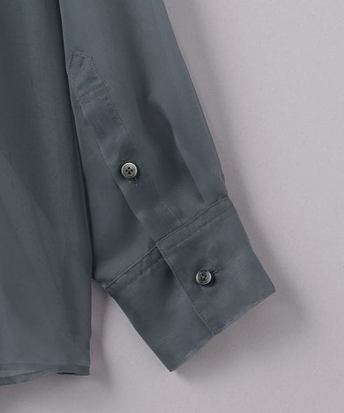 ゆったりとしたシルエットのレギュラーカラーシャツをシアーな素材でトレンド感のある一枚に。