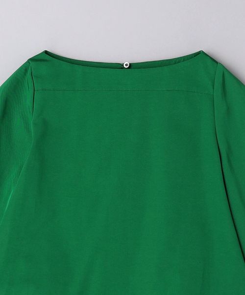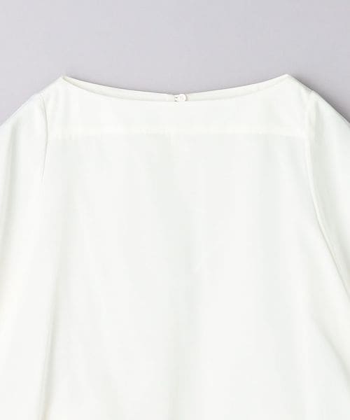 ボートネックのすっきりとした開きが新鮮なブラウス。