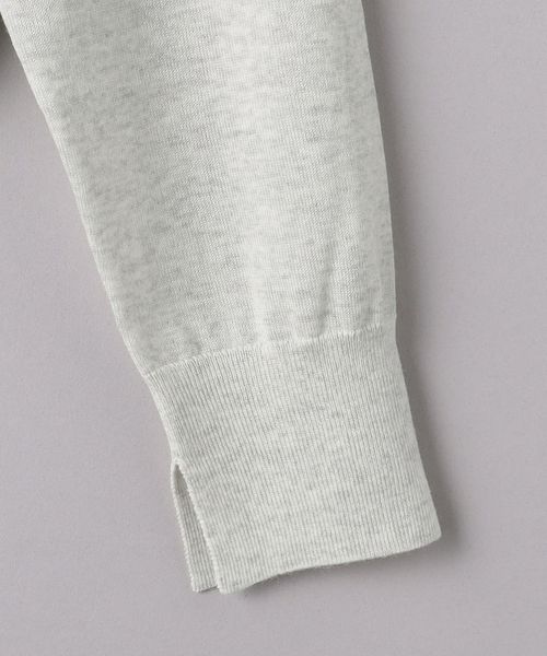 裾や袖口の前後差を活かしたレイヤードで、リブがのぞくところがポイントです。