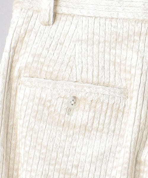 ブライトレーヨンの光沢をいかしたコーデュロイで上品な表面感が特徴。