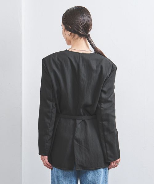 共布ベルトで絞った着こなしが新鮮なジャケット。