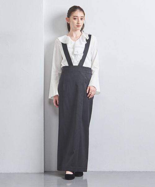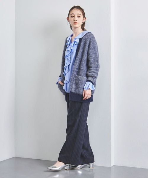 ラッフルフリルを活かしたVネックカーディガンやジャケットのインナーとしてもおすすめ。