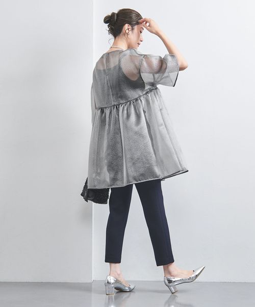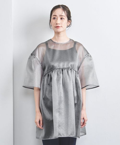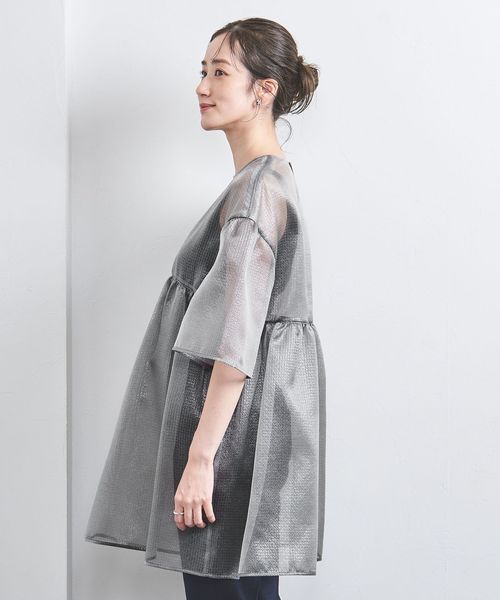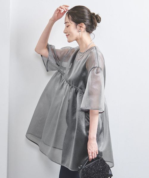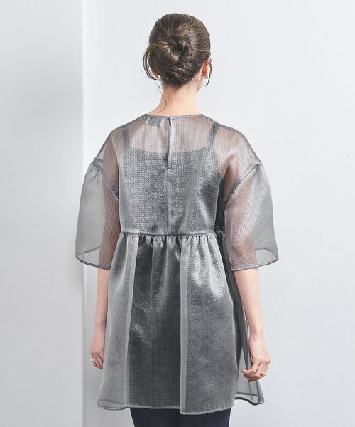 華やかなメタリック素材とミニマルデザインのバランスが大人なシアーブラウス