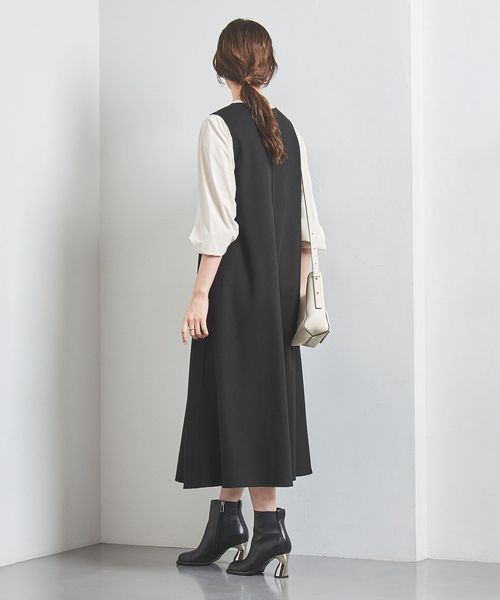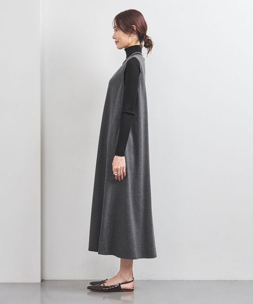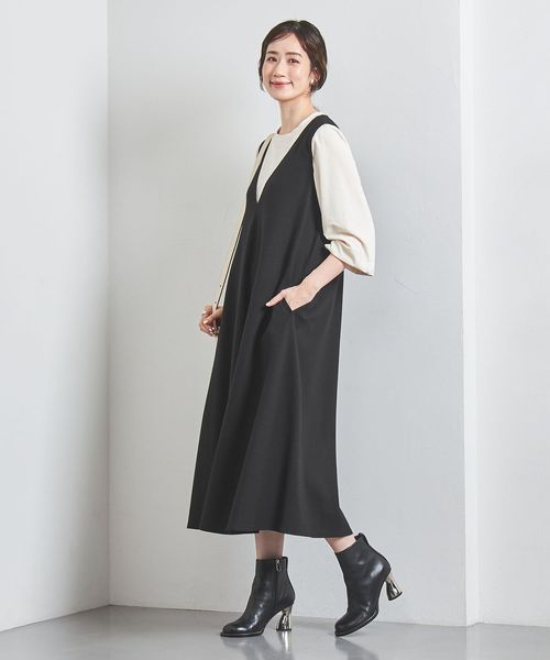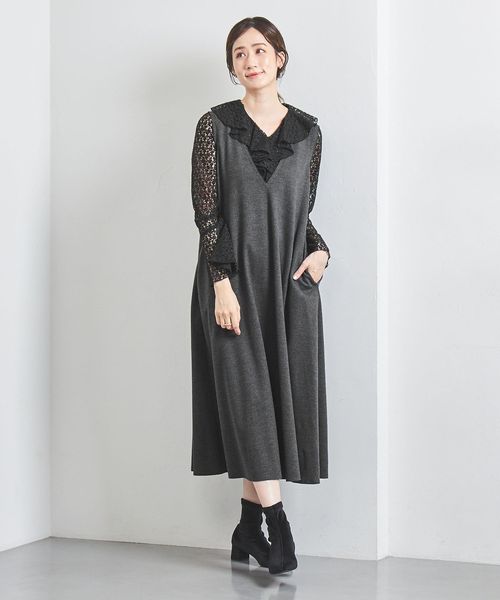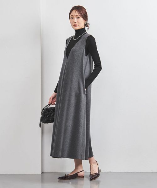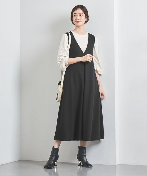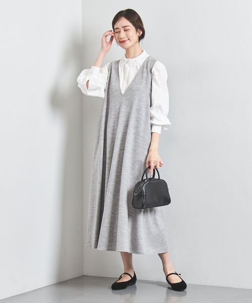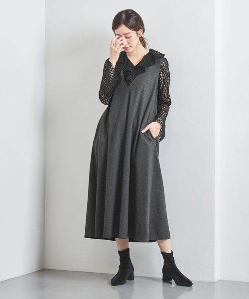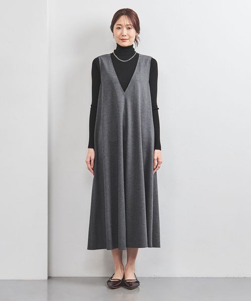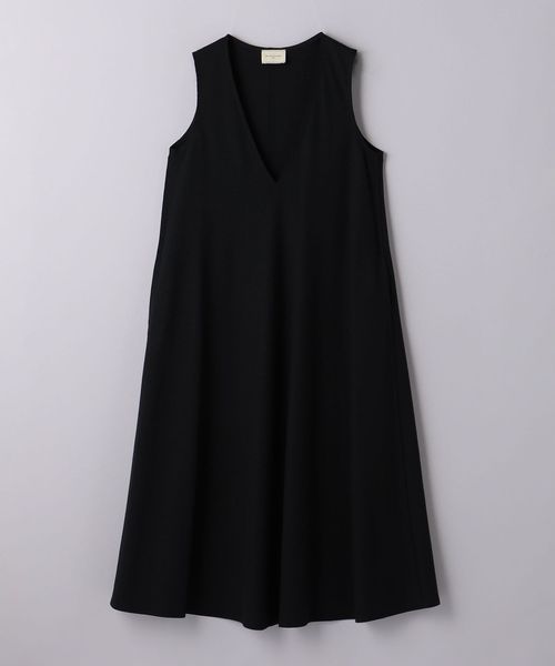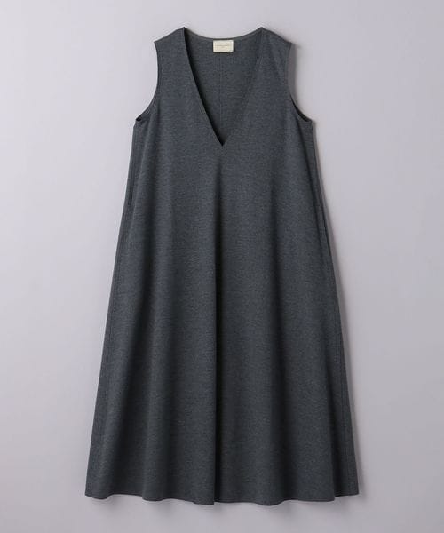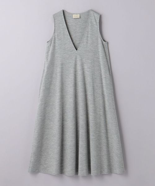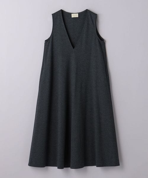 深めのVネック設定で、裾に向けてたっぷりの分量感を入れたフレアシルエット。