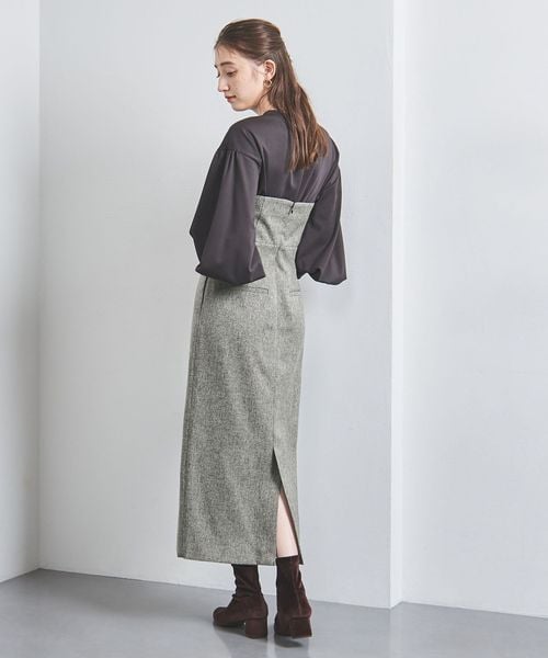 フィット感のあるカットソーや袖ボリュームのブラウス合わせがおすすめです。