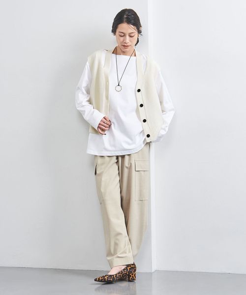 ネックにスリットを施し、肌やインナーが覗くことでニュアンスを生むフロントボタンのベスト。