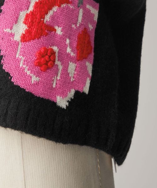 大胆な花柄で遊びのある着こなしが楽しめるニットボレロ