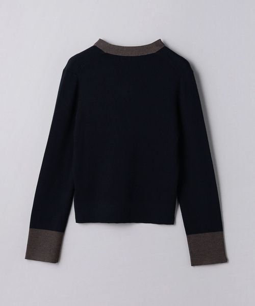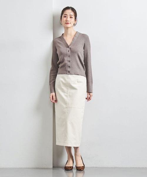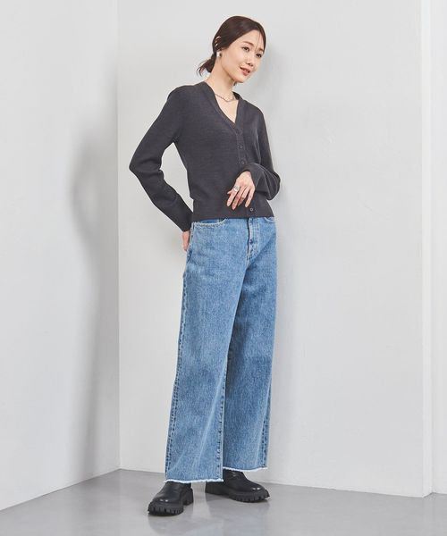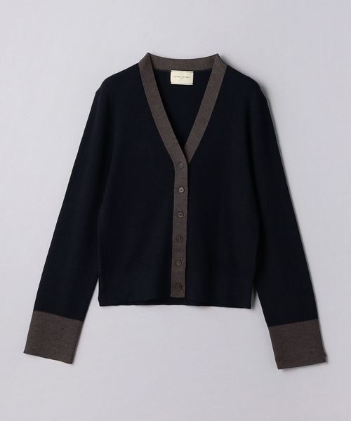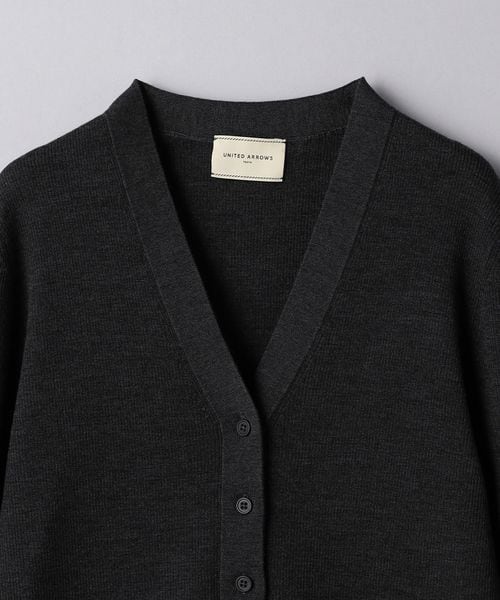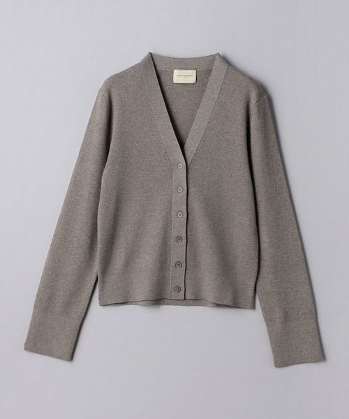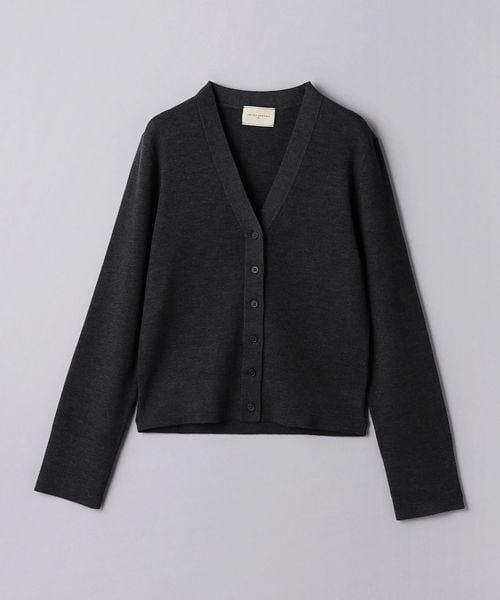 編み目の詰まった美しいリブ編地のVネックカーディガン。