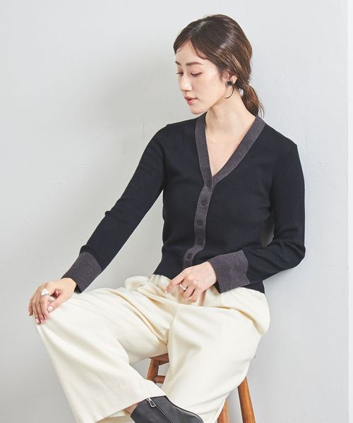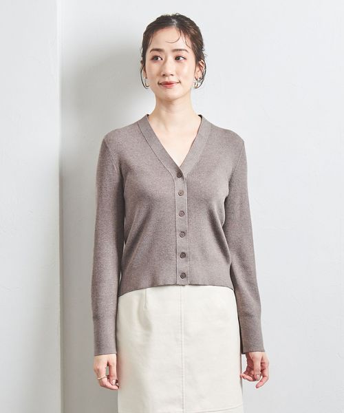 美しいリブ編地となめらかで肌あたりのよいVネックカーディガン