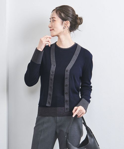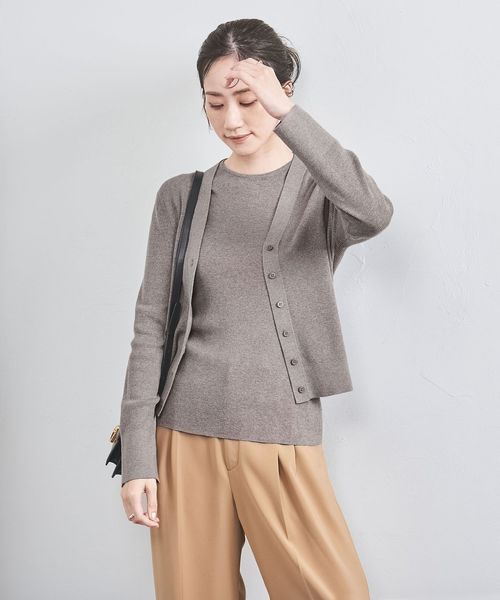 やや短めの着丈でスタイルアップして見えるニット羽織り。