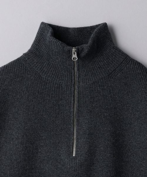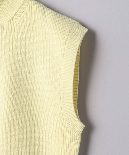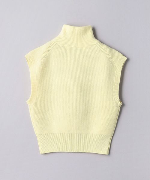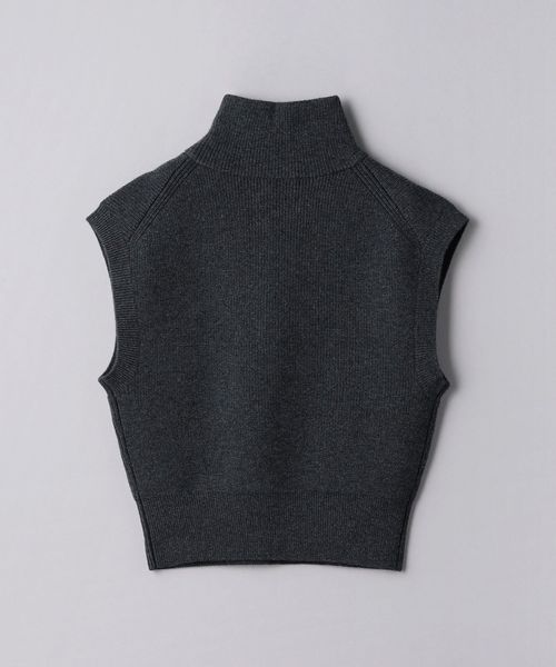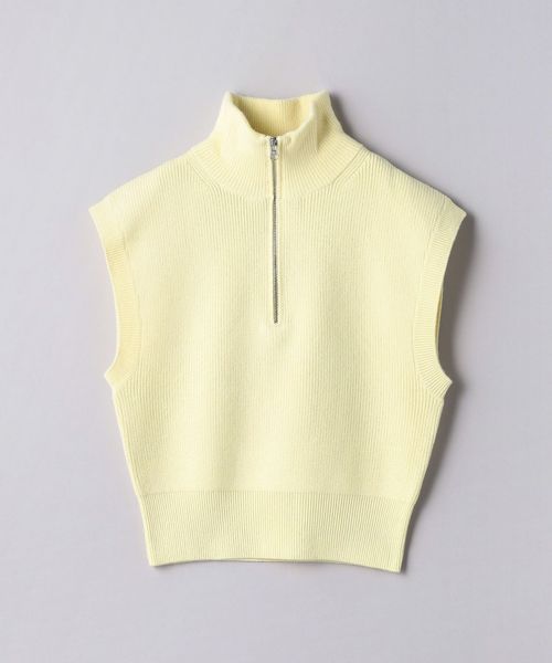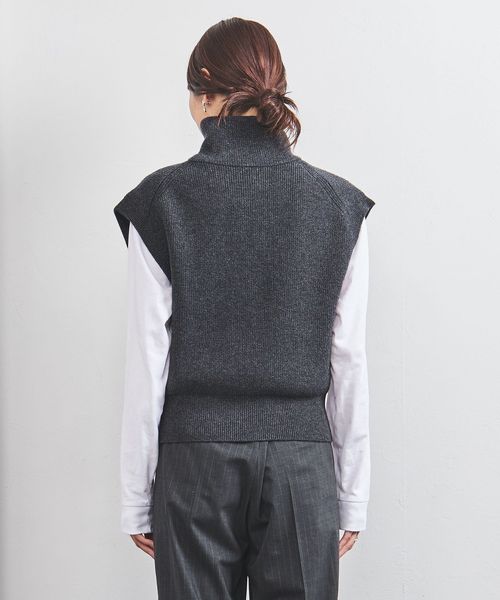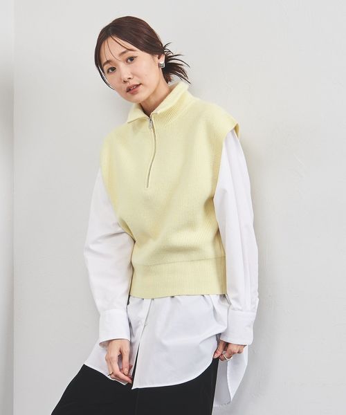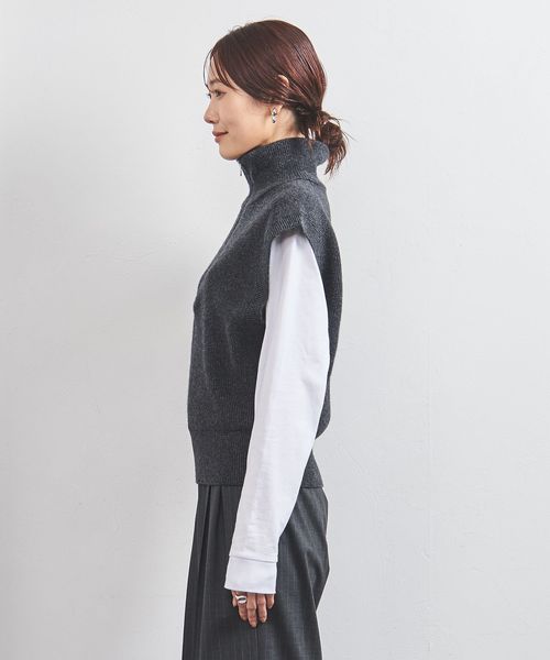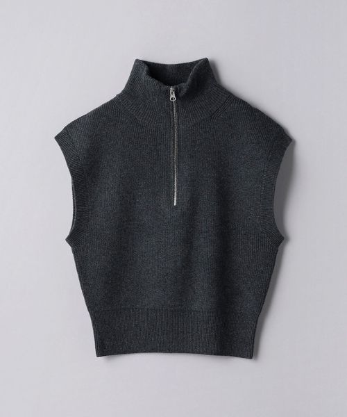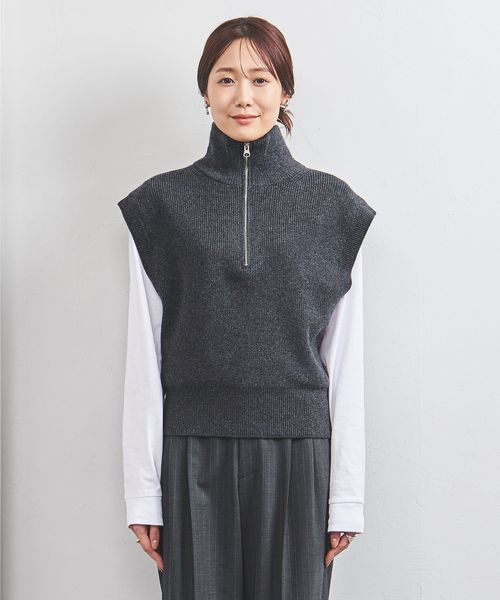 ドライバーズニットのような、フロントファスナーデザインのニットベスト。