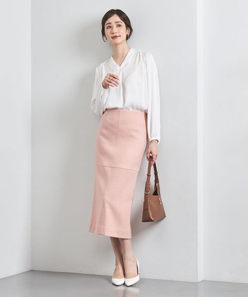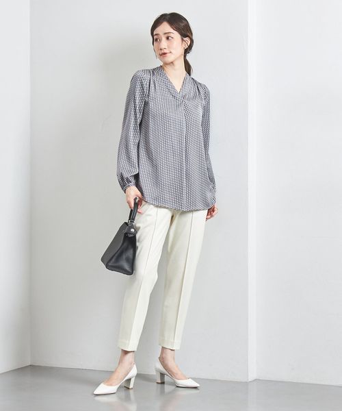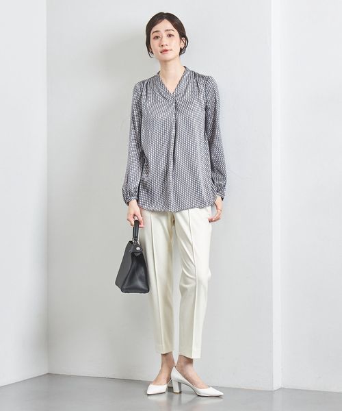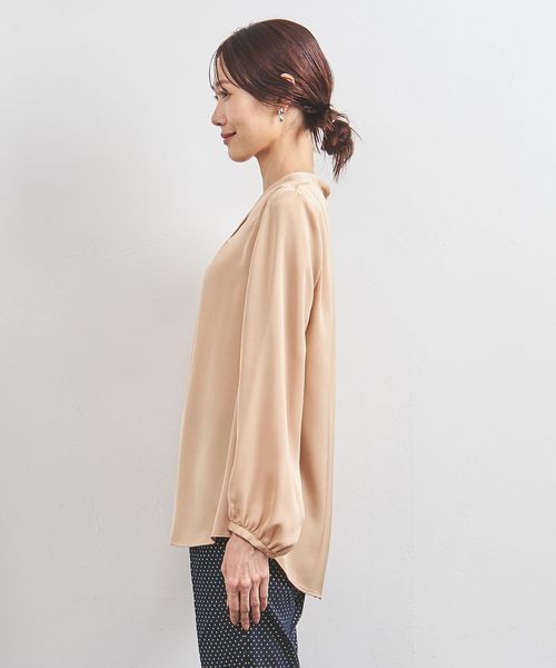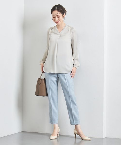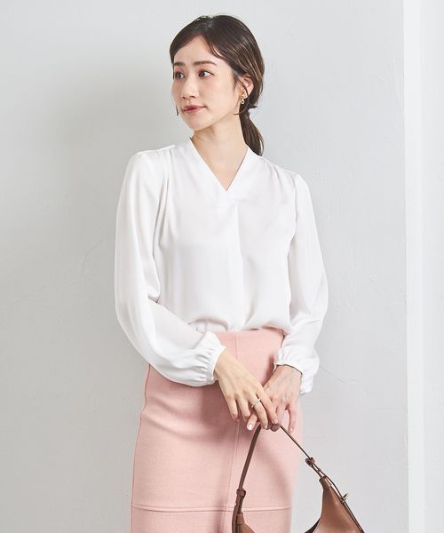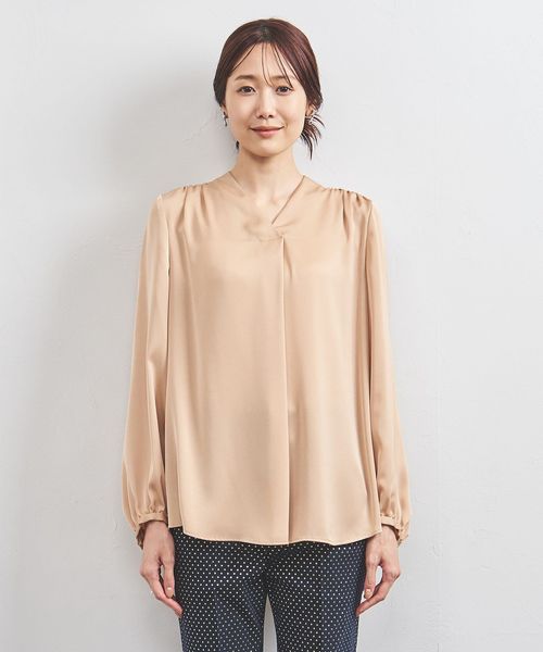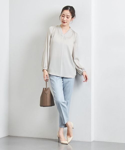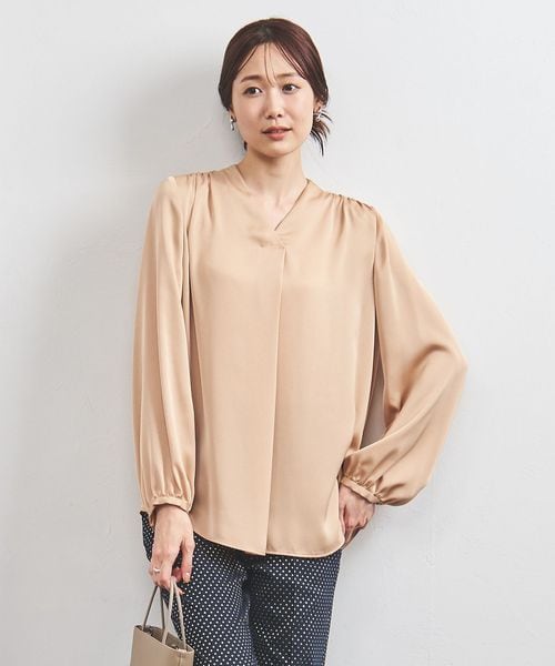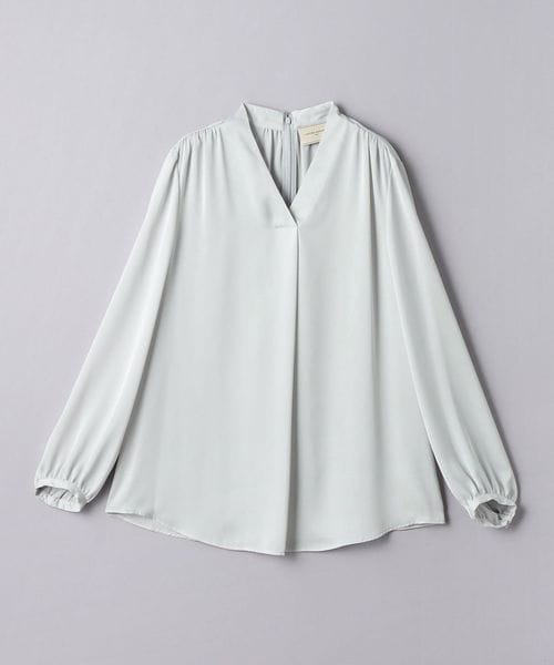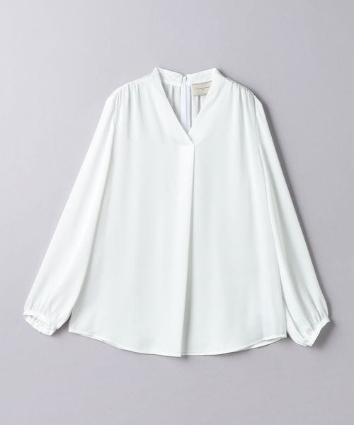 ジャケットのインナーにすっきりと辛口の印象で合わせられるインナーブラウス。