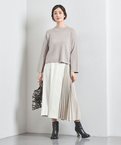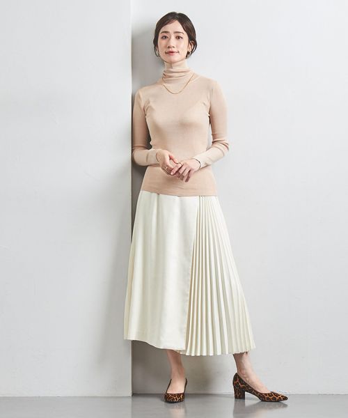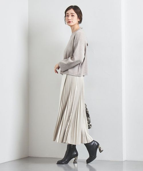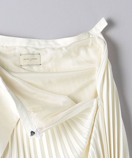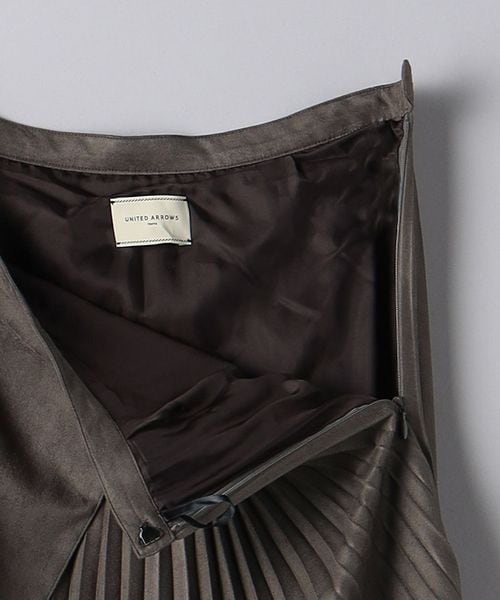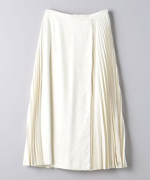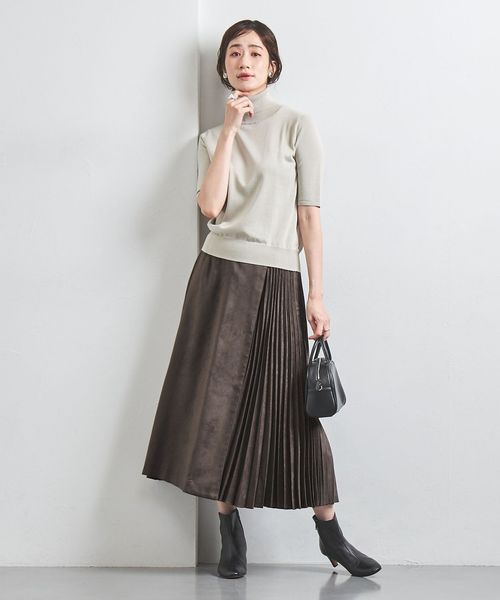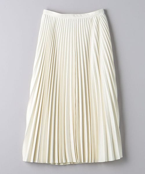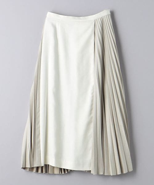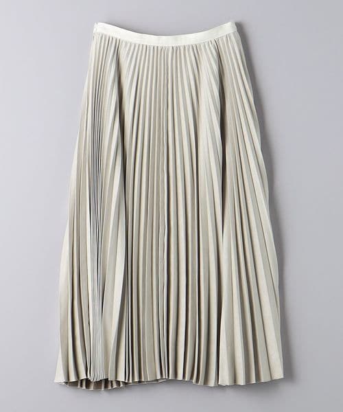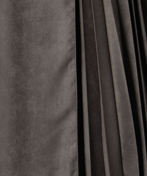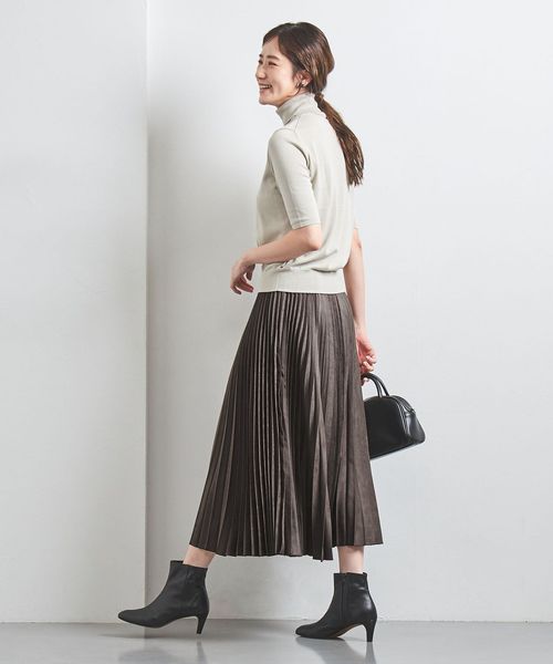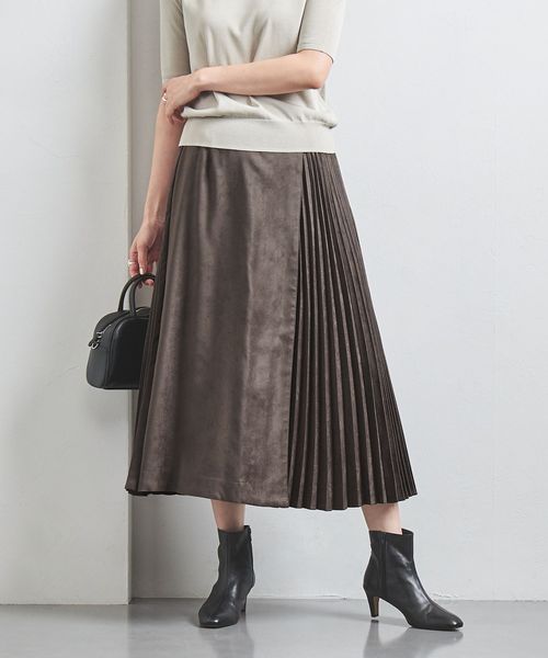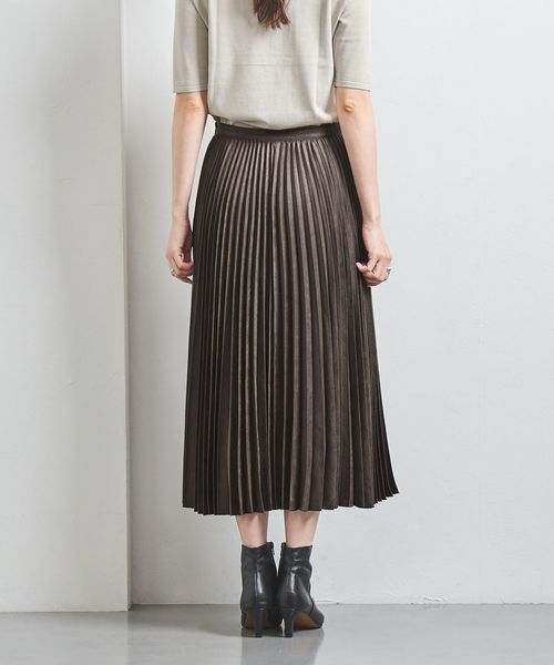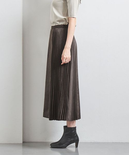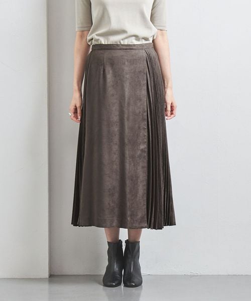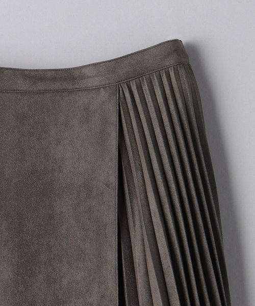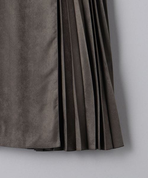 スエード調の素材特性を生かして、サイドからバックにプリーツ加工を施したスカート。