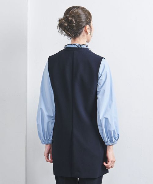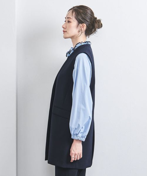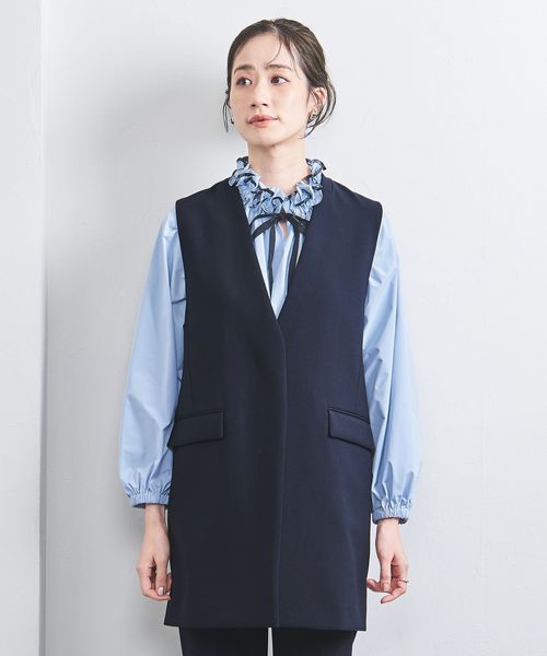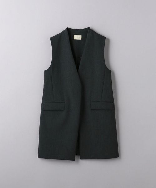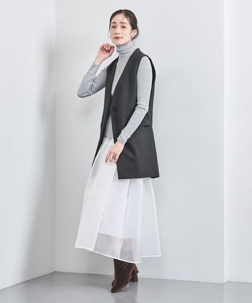 ウエストに絞りの無いボックスシルエットのミドル丈ベスト。