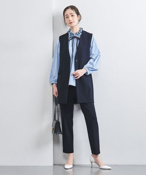 首元にフリルをあしらったデザインのブラウスと合わせていただくのも素敵です。