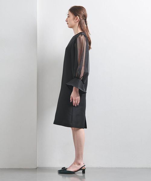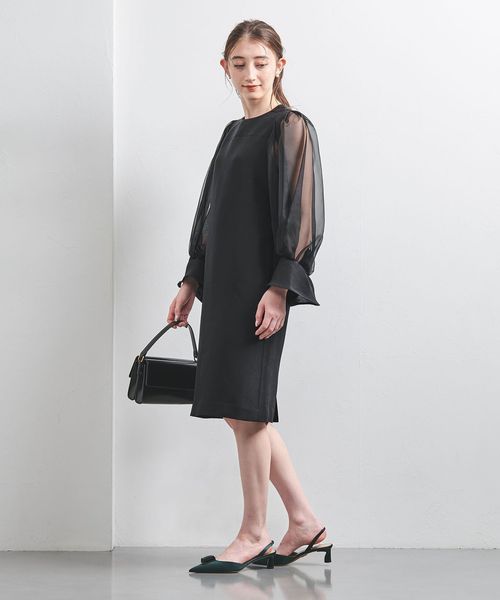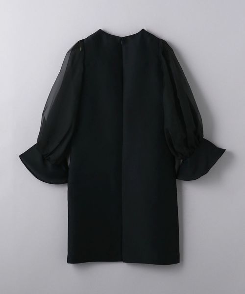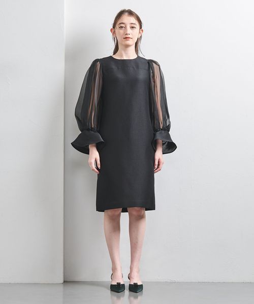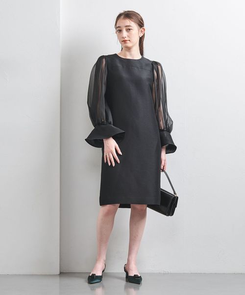 華やかな袖とミニマルなデザインバランスがスタイリッシュな大人のミニドレス