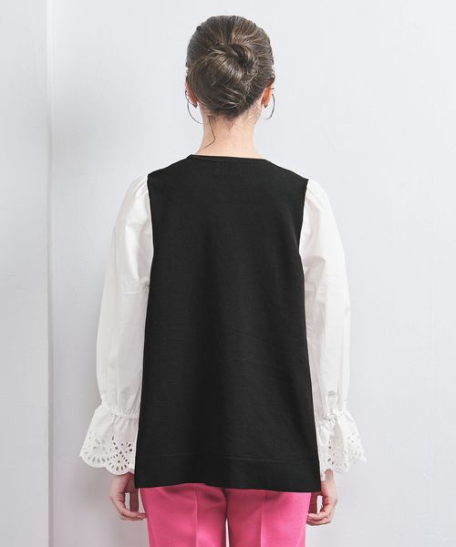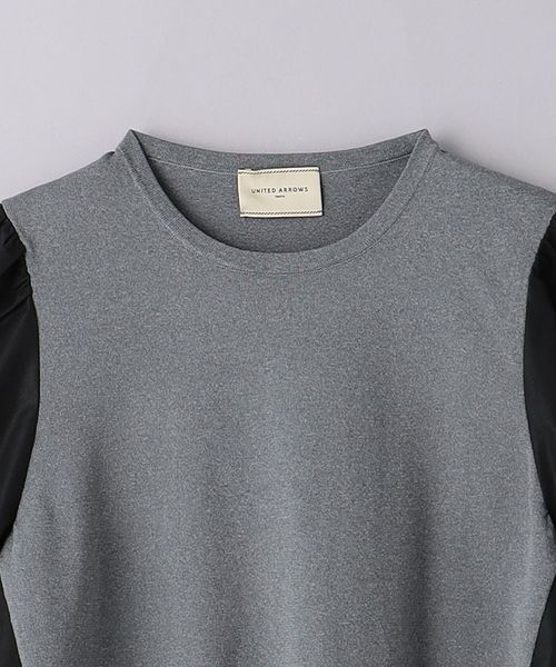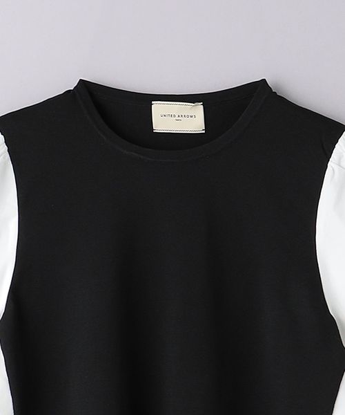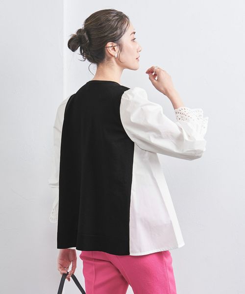 身頃の中心部分はニット素材を、両脇と袖部分は布帛生地を使用した一着。