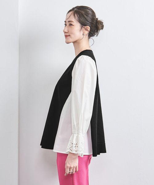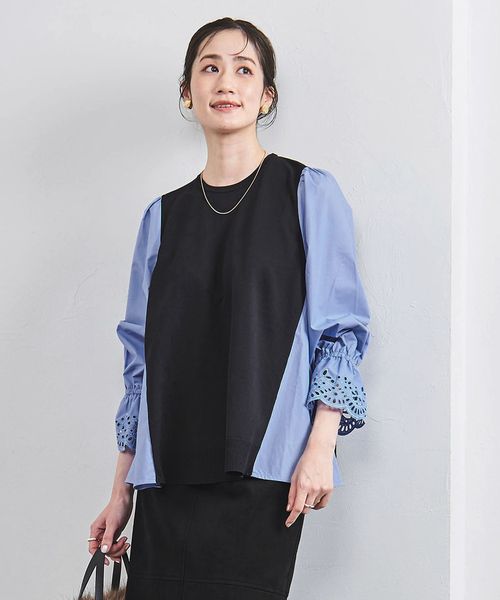 スカラップ コンビ スリーブ プルオーバー