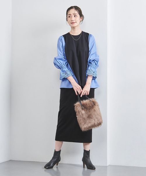 ストレートラインのパンツやスリムなテーパードパンツ、Iラインのロングスカートなどが好相性。