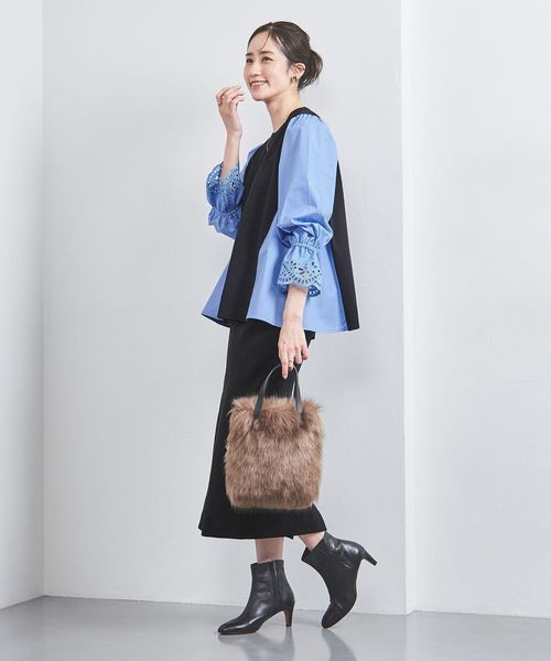 異素材コンビが華やかさをアップさせる着映えトップス